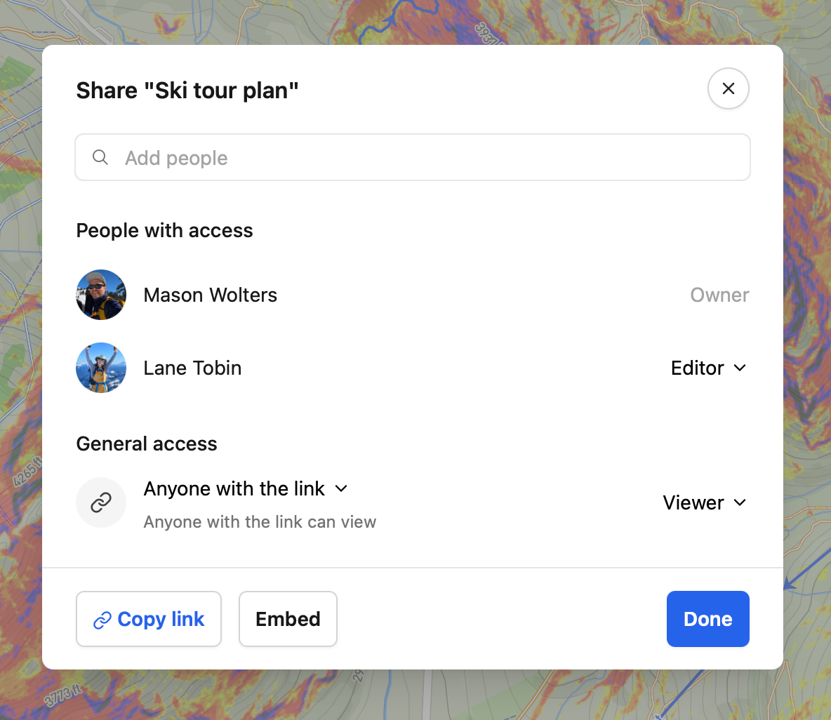 This allows sharing a map link with general view-only access, while allowing a specific subset of collaborators to edit.